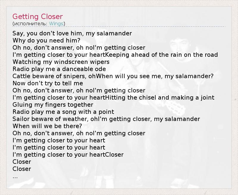А как ты думаешь, о чем песня "Getting Closer" ?