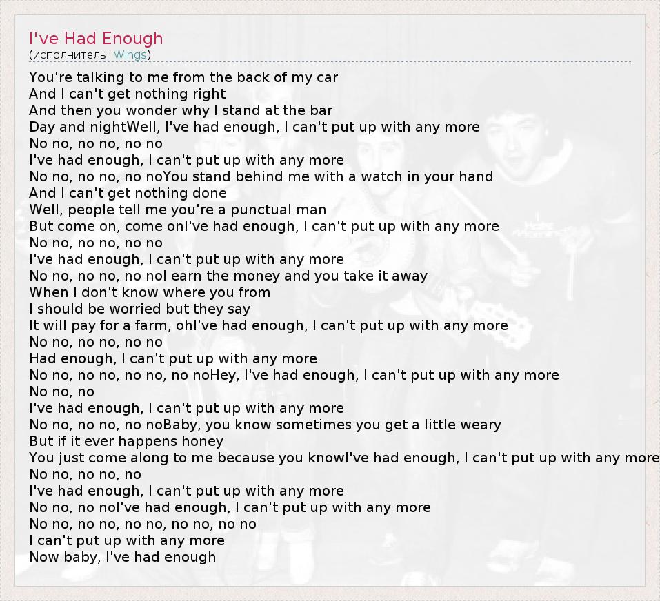 А как ты думаешь, о чем песня "I've Had Enough" ?