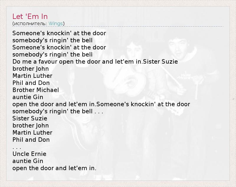 А как ты думаешь, о чем песня "Let 'Em In" ?