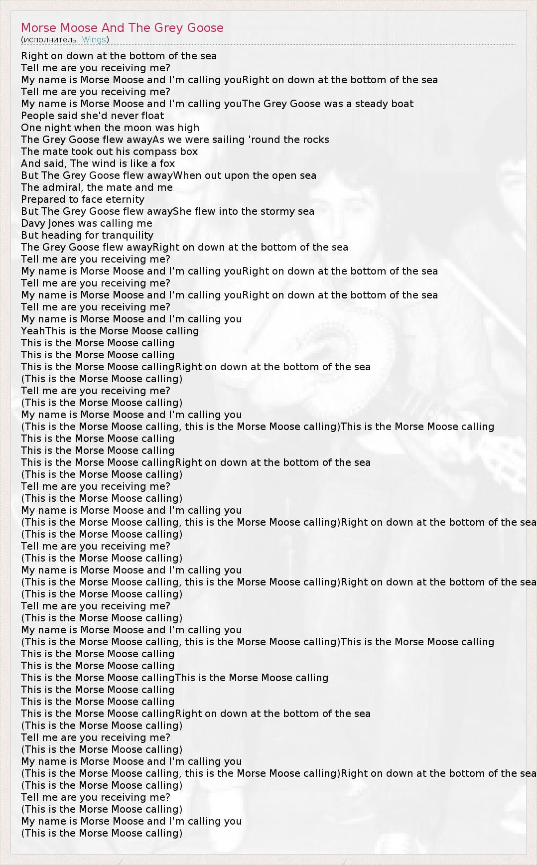 ГлавнаяИсполнителиWingsMorse Moose And The Grey Goose