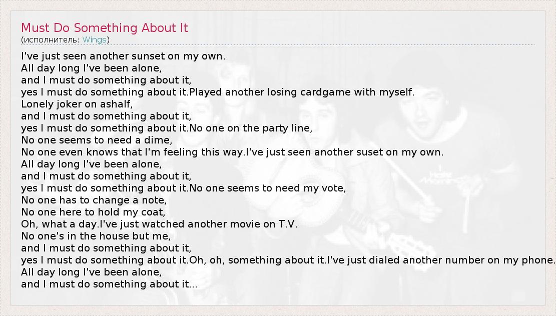 А как ты думаешь, о чем песня "Must Do Something About It" ?