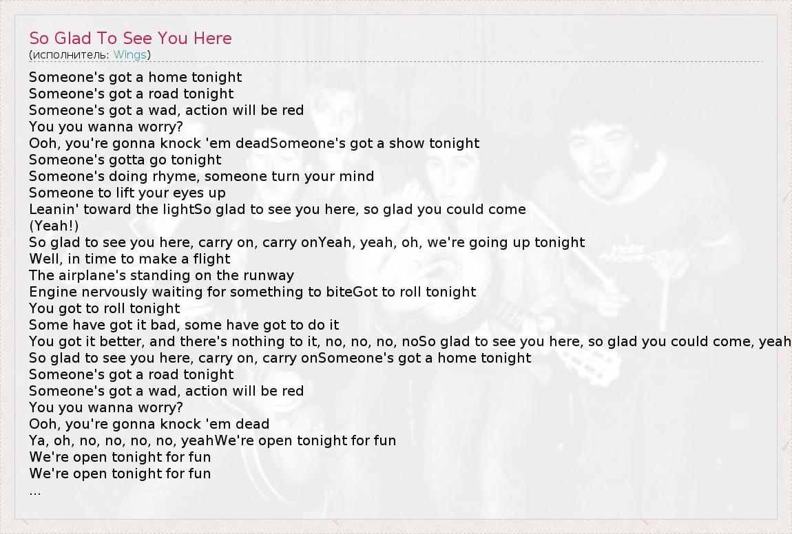А как ты думаешь, о чем песня "So Glad To See You Here" ?
