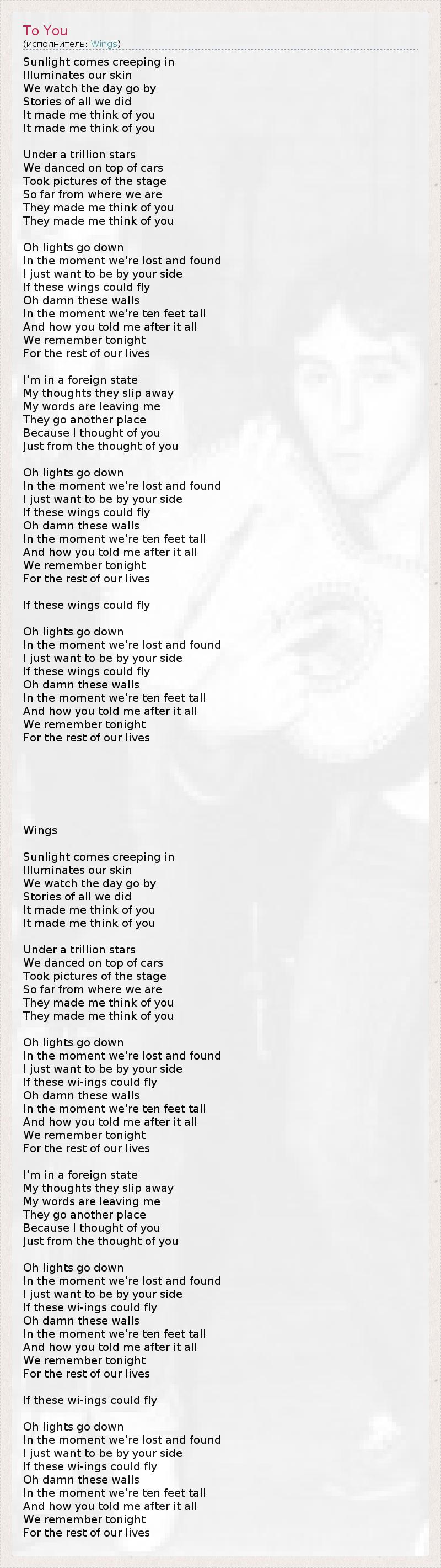 Это интересно:Wings — рок-группа Пола Маккартни, основанная после распада The Beatles в 1971 году и просуществовавшая до 1981 года. Несмотря на частые изменения в составе (постоянными участникам были лишь Пол Маккартни, Линда Маккартни и Дэнни Лэйн), группа пользовалась в 1970-х годах стабильным успехом. 12 синглов Wings входили в британский Top 10 (один из них, Mull of Kintyre, 9 недель держался на #1), 14 синглов — в американскую... продолжение