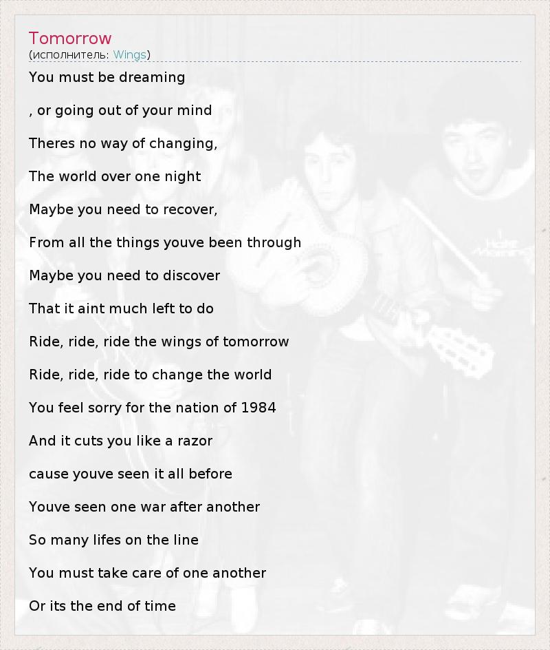 А как ты думаешь, о чем песня "Tomorrow" ?