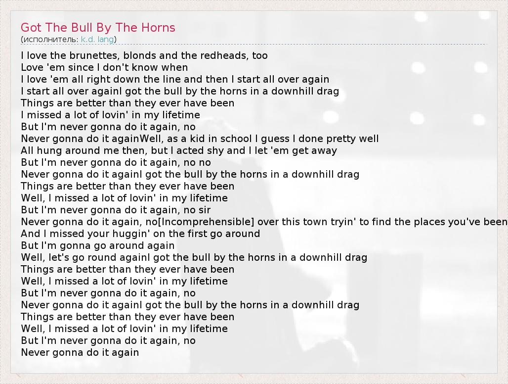 А как ты думаешь, о чем песня "Got The Bull By The Horns" ?