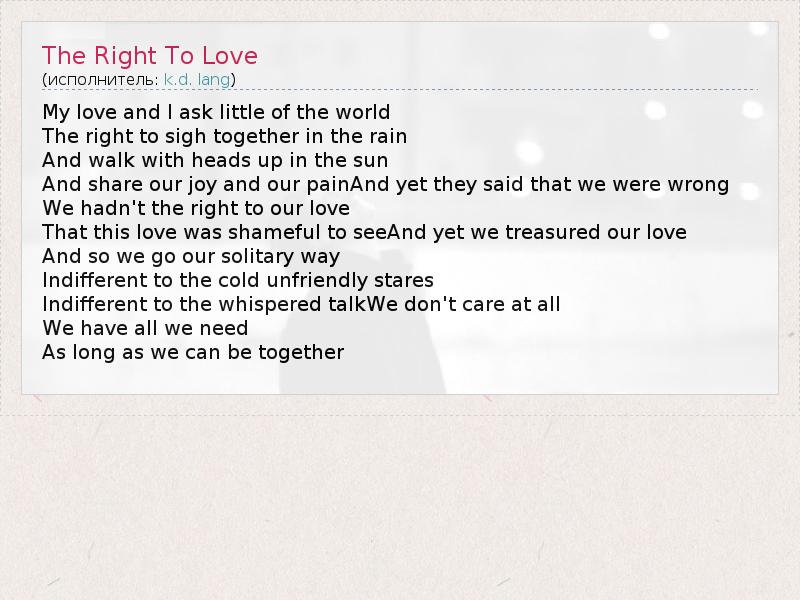А как ты думаешь, о чем песня "The Right To Love" ?
