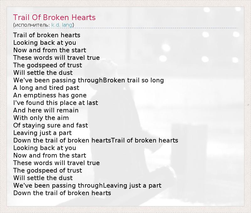 А как ты думаешь, о чем песня "Trail Of Broken Hearts" ?