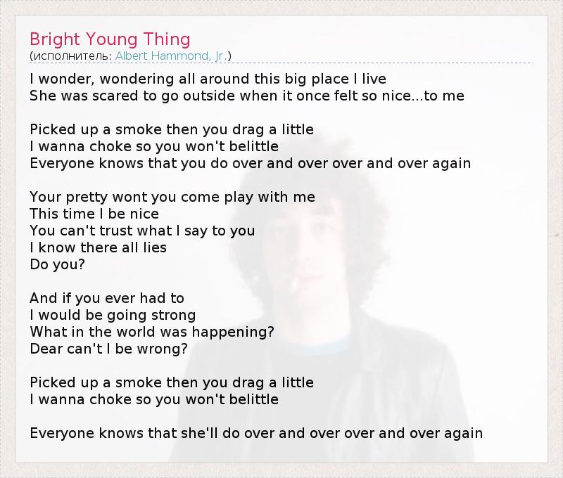 А как ты думаешь, о чем песня "Bright Young Thing" ?