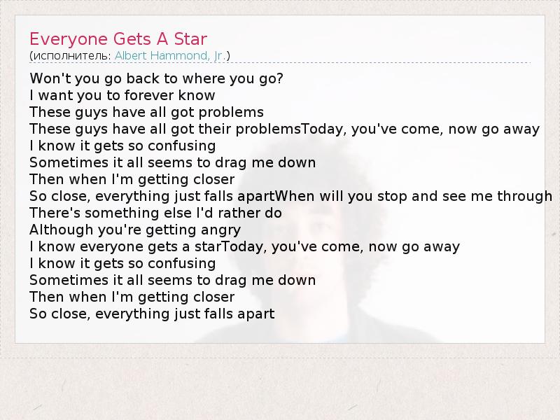 А как ты думаешь, о чем песня "Everyone Gets A Star" ?