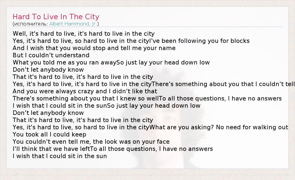 А как ты думаешь, о чем песня "Hard To Live In The City" ?