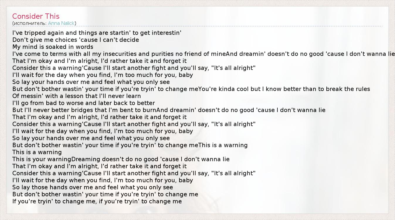 But don't bother wastin' your time if you're tryin' to change meThis is a warning