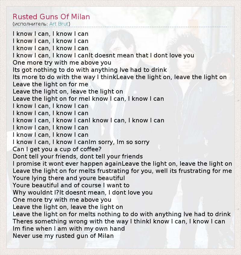 А как ты думаешь, о чем песня "Rusted Guns Of Milan" ?