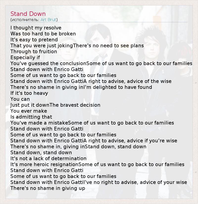 Stand down with Enrico GattiI've no right to advise, advice of your wise