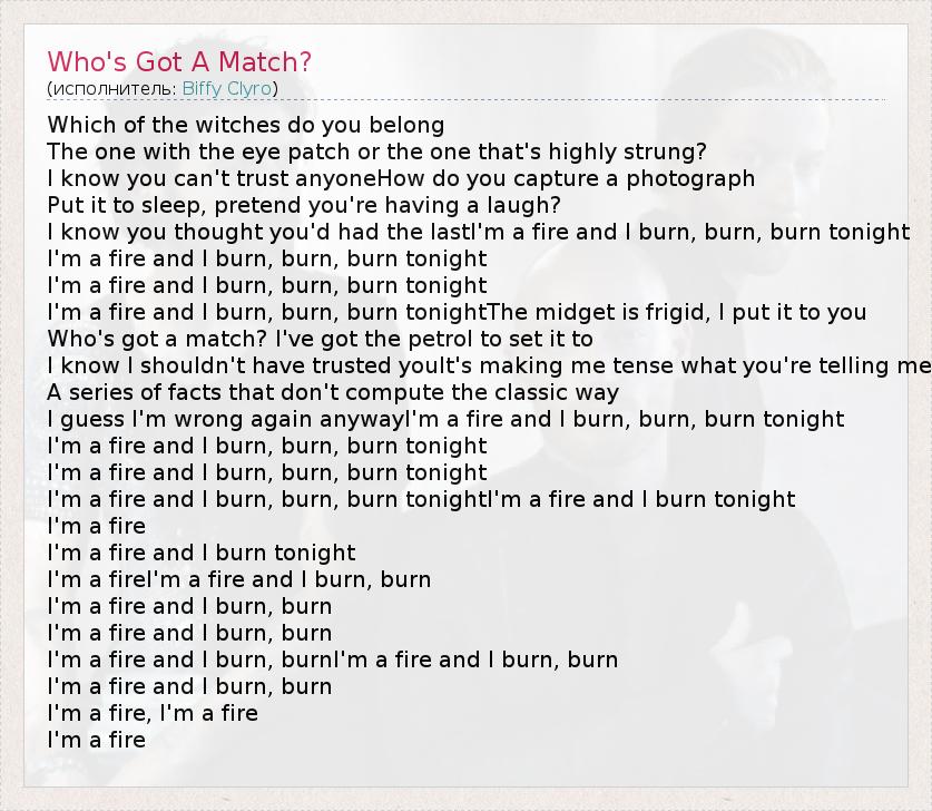А как ты думаешь, о чем песня "Who's Got A Match?" ?