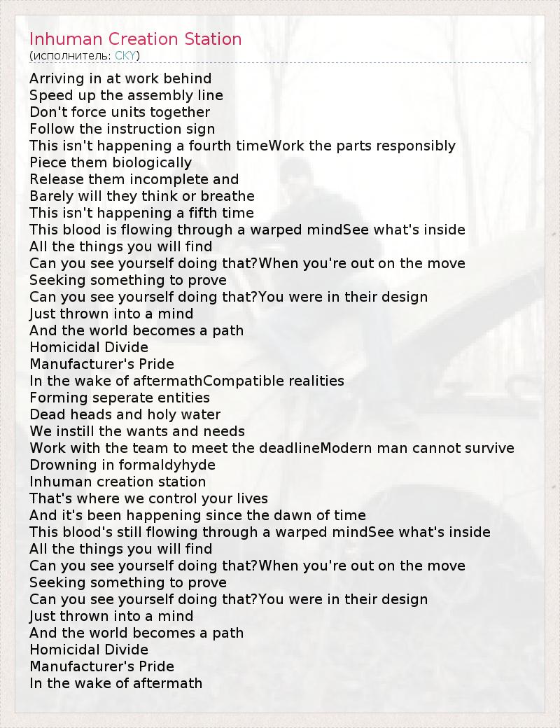 ГлавнаяИсполнителиCKYInhuman Creation Station