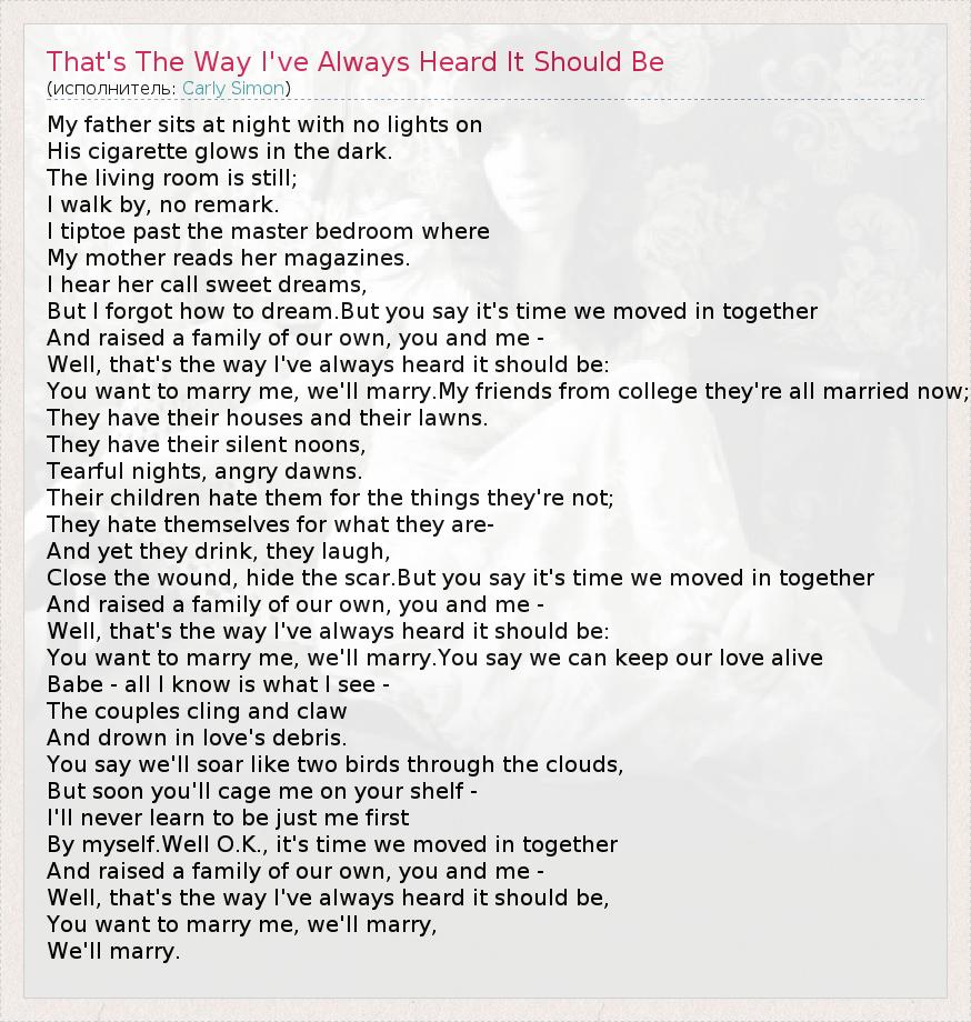 А как ты думаешь, о чем песня "That's The Way I've Always Heard It Should Be" ?