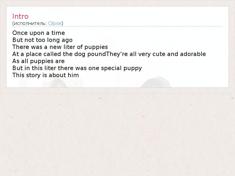 Это интересно:Clipse – выходцы из Бронкса. В их музыке нет ничего от Нью-Йорка и тем невероятнее звучит их происхождение. Братья Джин и Терренс Торнтоны (Malice и Pusha-T) перебрались в Вирджиния Бич, город на Атлантическом побережье, где взяли начало карьеры таких людей как Timbaland и The Neptunes.По словам Malice, сначала они собирались назваться Full Eclipse, "полное... продолжение