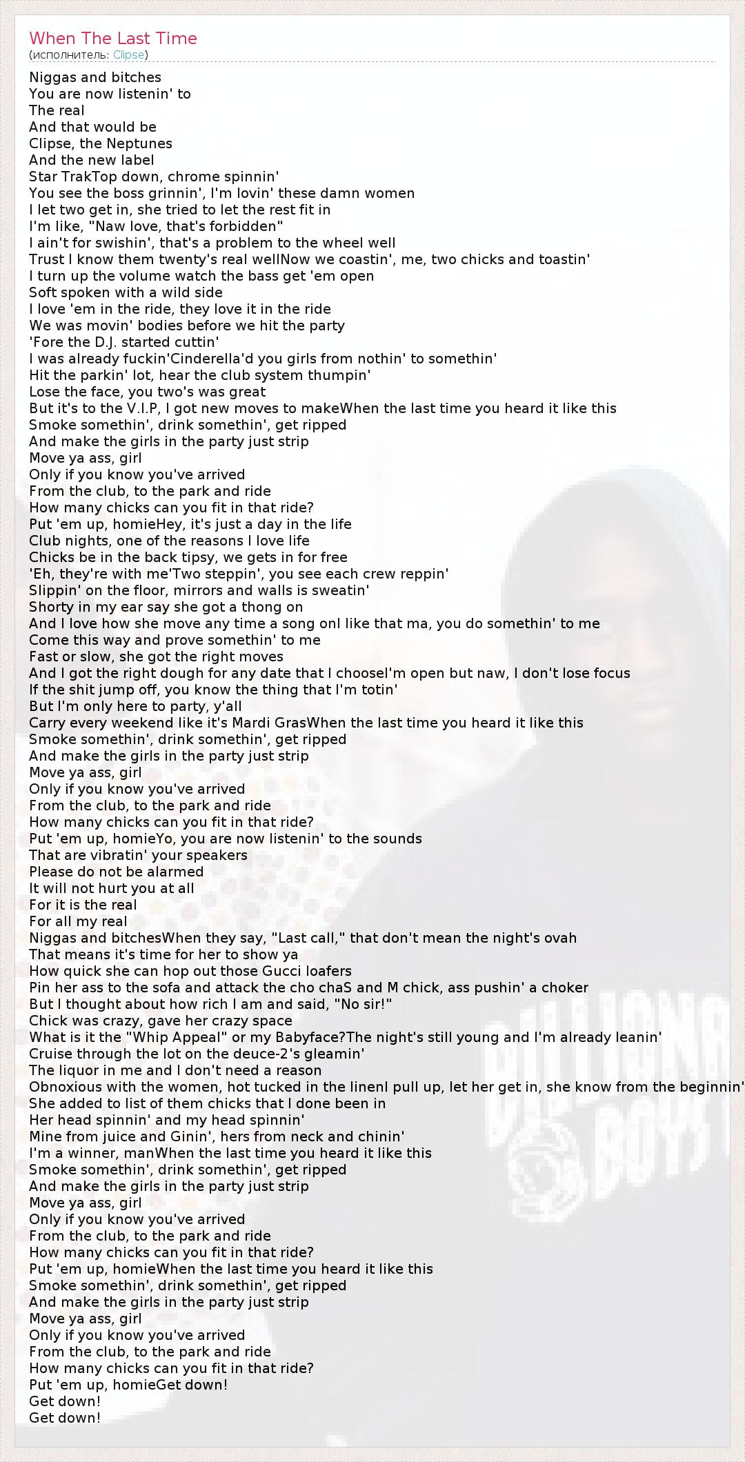 А как ты думаешь, о чем песня "When The Last Time" ?