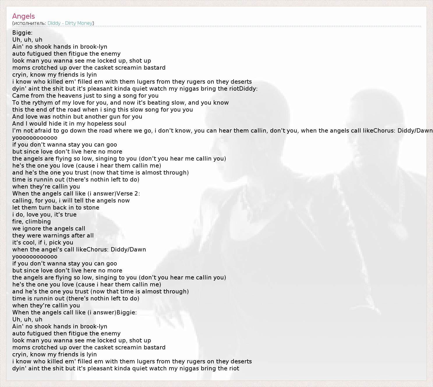 when the angel's call likeChorus: Diddy/Dawn