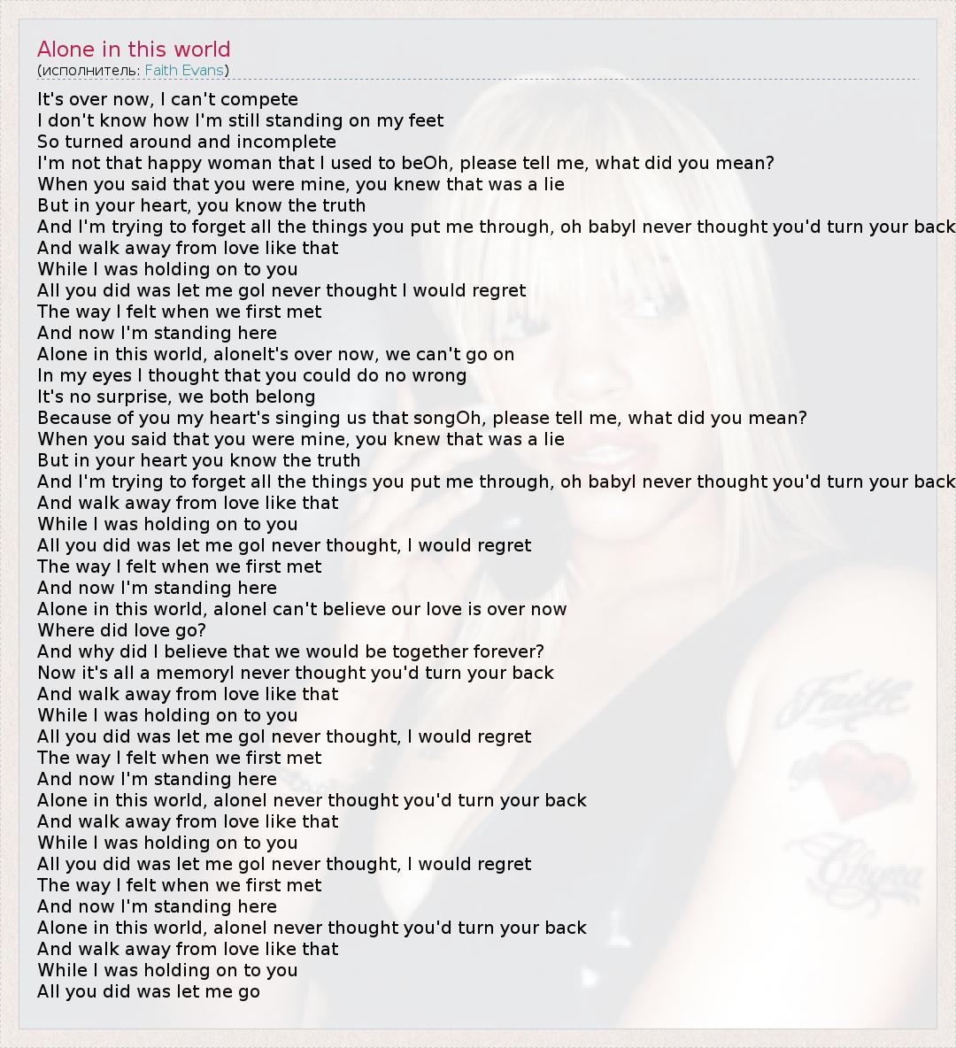 Alone in this world, aloneI can't believe our love is over now