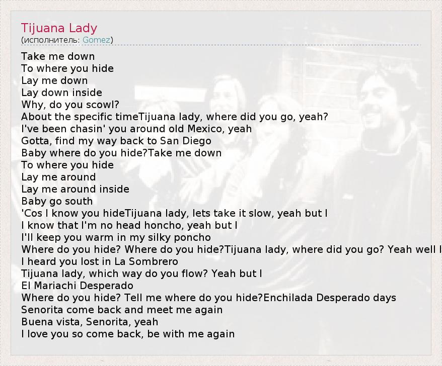 А как ты думаешь, о чем песня "Tijuana Lady" ?