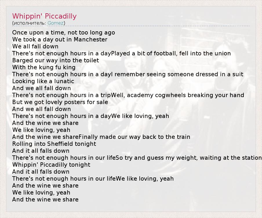 А как ты думаешь, о чем песня "Whippin' Piccadilly" ?