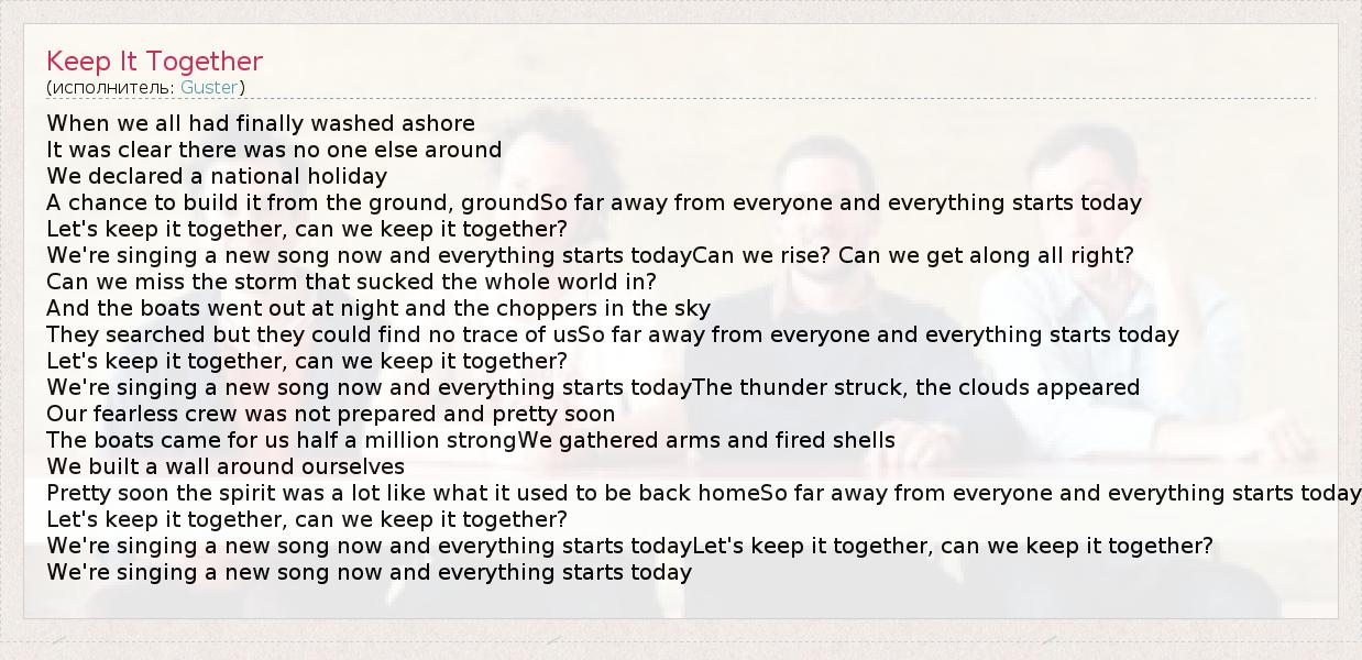 А как ты думаешь, о чем песня "Keep It Together" ?