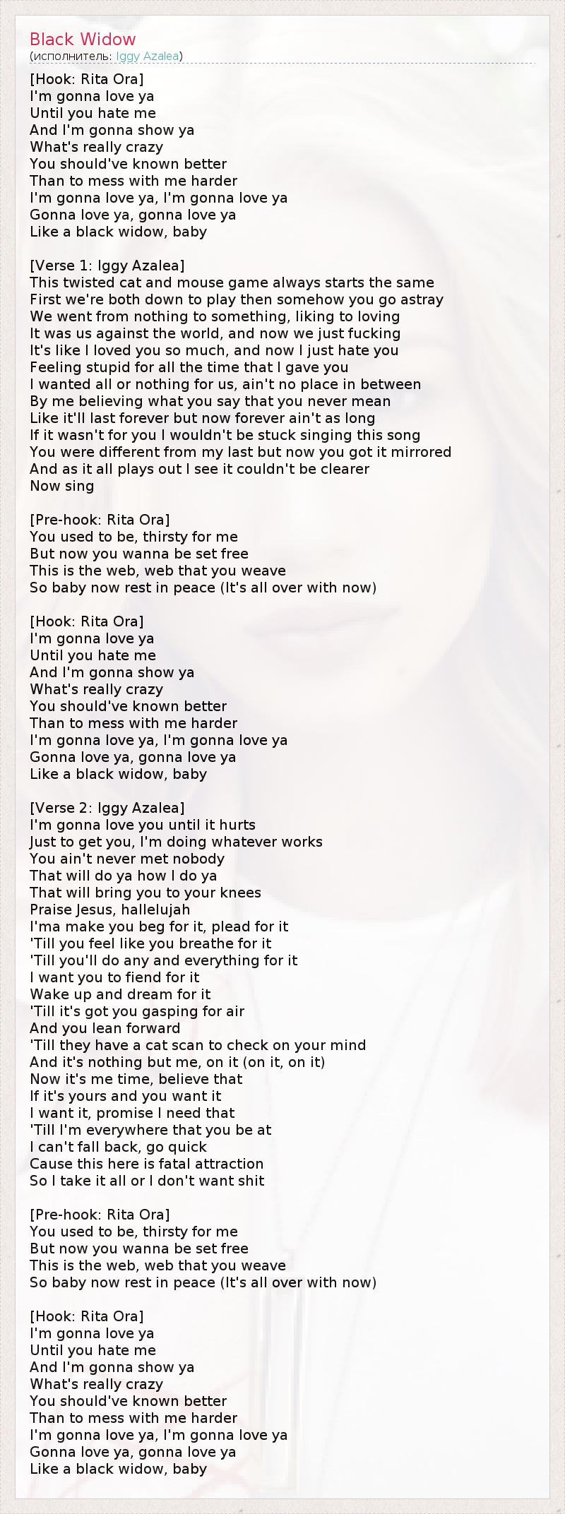 А как ты думаешь, о чем песня "Black Widow" ?
