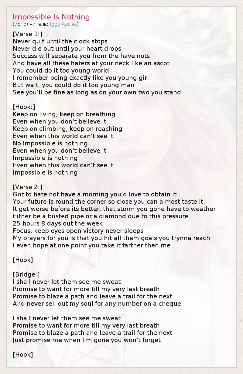 А как ты думаешь, о чем песня "Impossible Is Nothing" ?