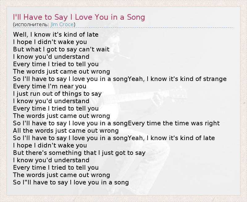 ГлавнаяИсполнителиJim CroceI'll Have to Say I Love You in a Song