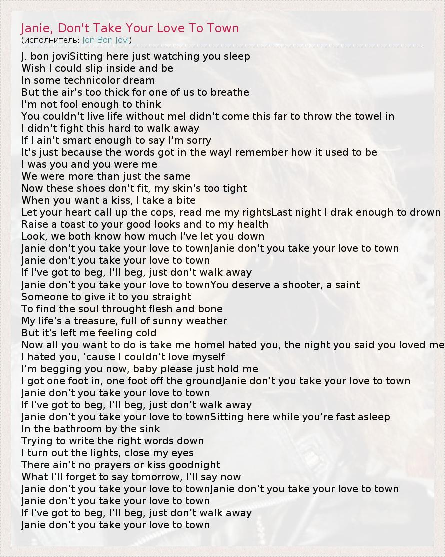 ГлавнаяИсполнителиJon Bon JoviJanie, Don't Take Your Love To Town