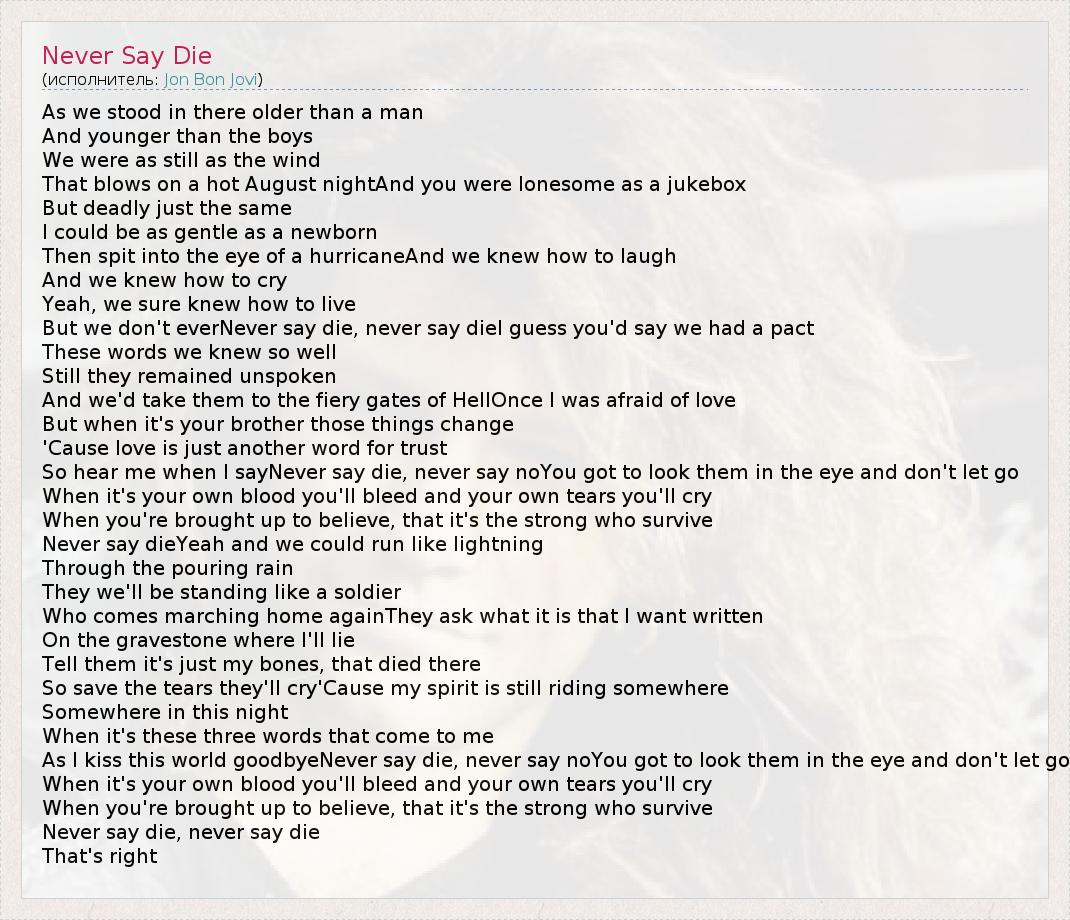 А как ты думаешь, о чем песня "Never Say Die" ?