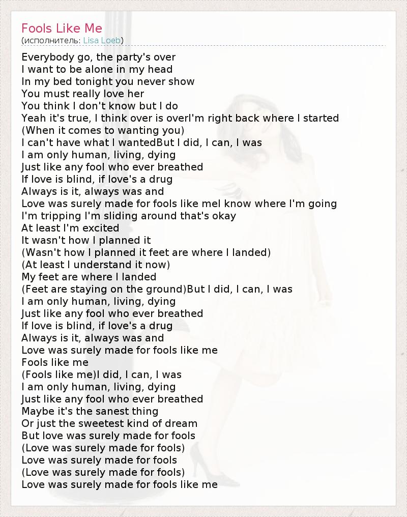А как ты думаешь, о чем песня "Fools Like Me" ?