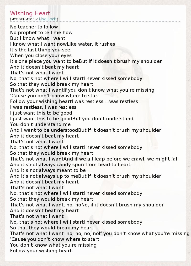 А как ты думаешь, о чем песня "Wishing Heart" ?