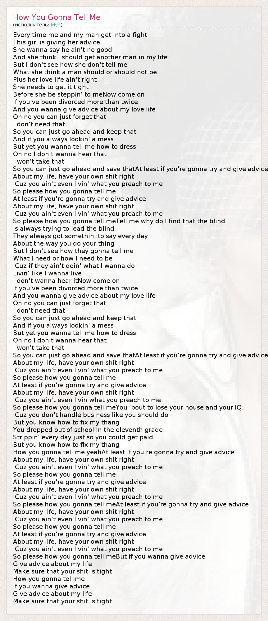 ГлавнаяИсполнителиMýaHow You Gonna Tell Me