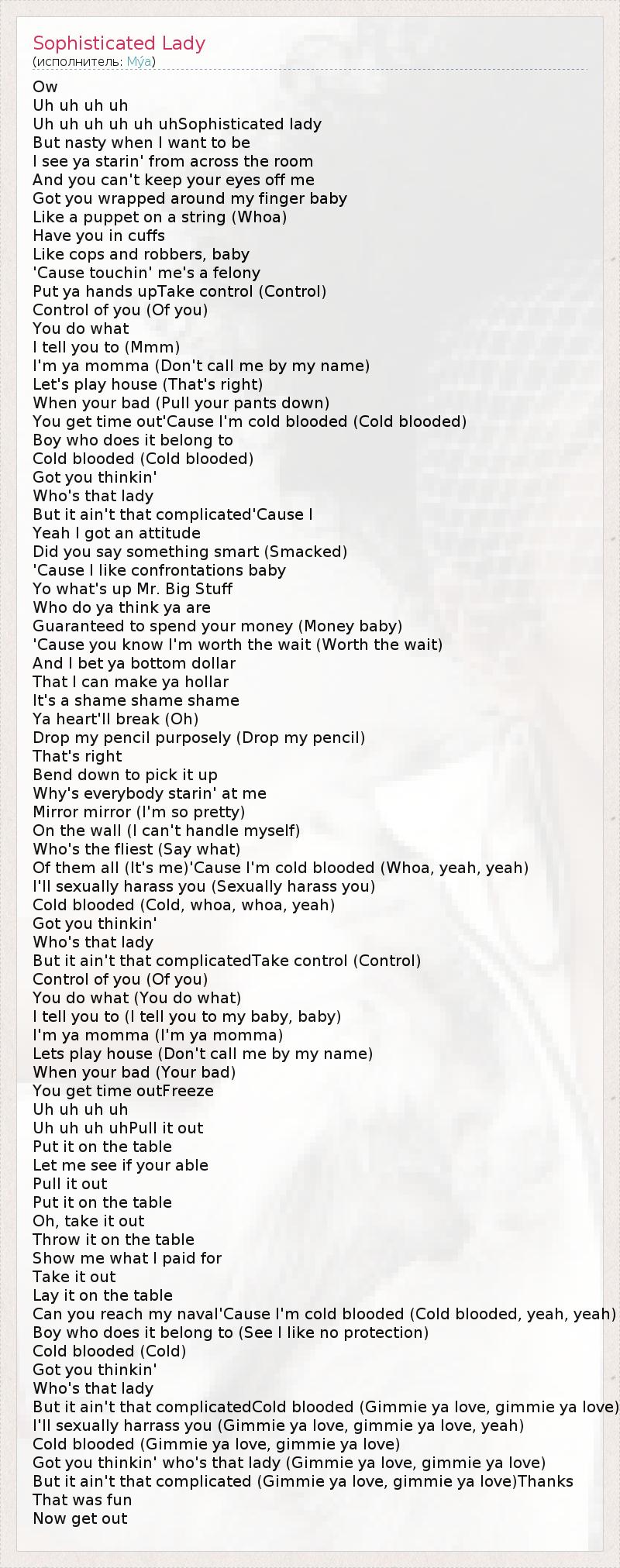 ГлавнаяИсполнителиMýaSophisticated Lady