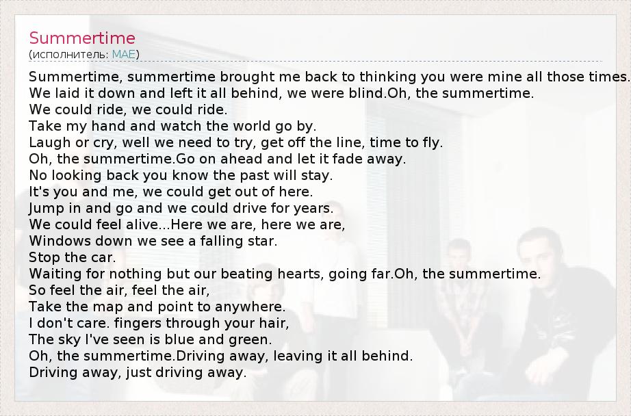 Summertime, summertime brought me back to thinking you were mine all those times.