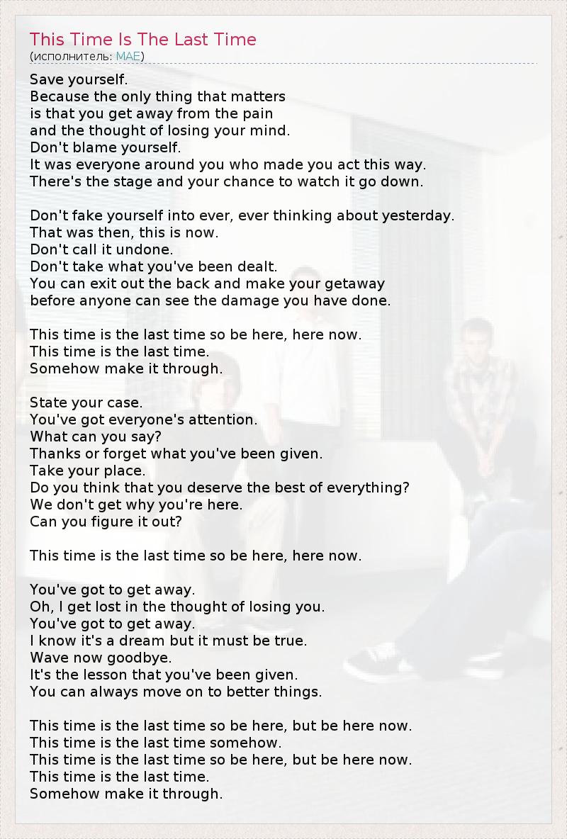 А как ты думаешь, о чем песня "This Time Is The Last Time" ?
