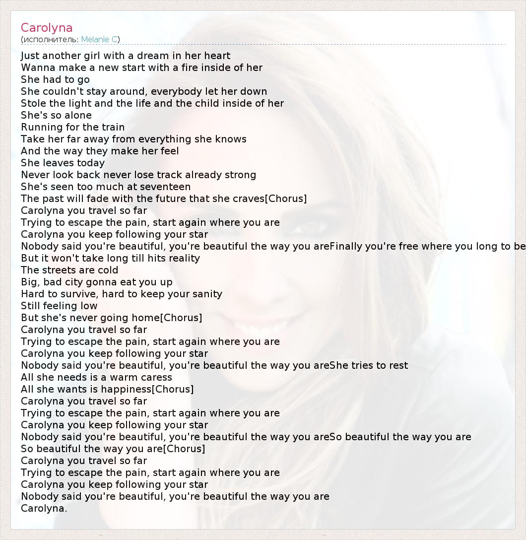 А как ты думаешь, о чем песня "Carolyna" ?