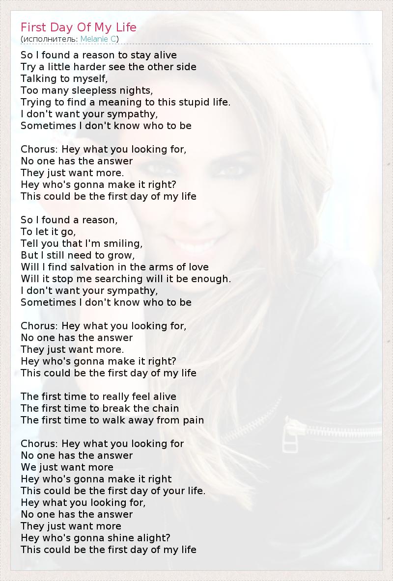 А как ты думаешь, о чем песня "First Day Of My Life" ?