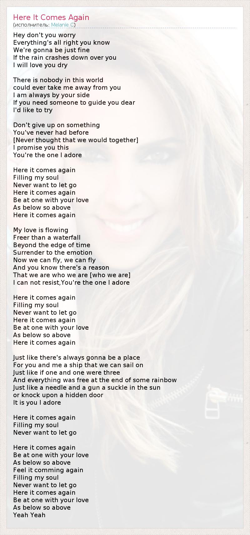 А как ты думаешь, о чем песня "Here It Comes Again" ?