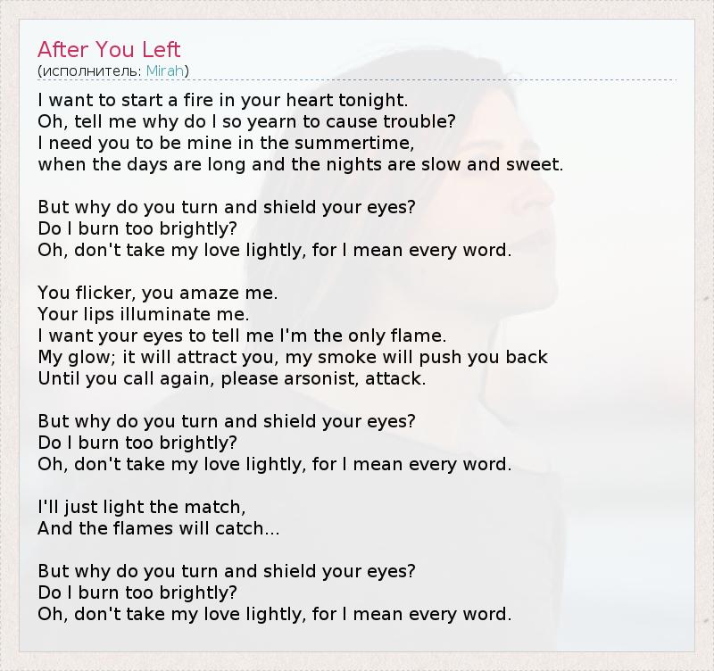 А как ты думаешь, о чем песня "After You Left" ?