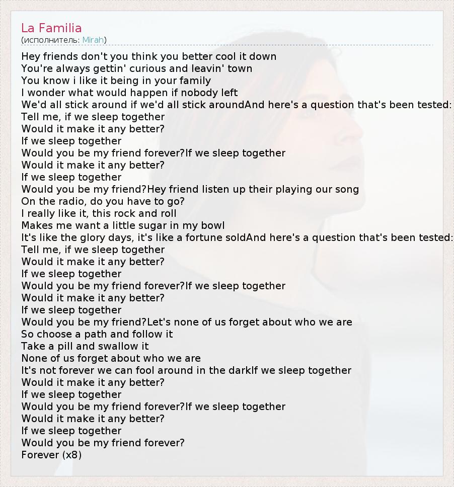 А как ты думаешь, о чем песня "La Familia" ?
