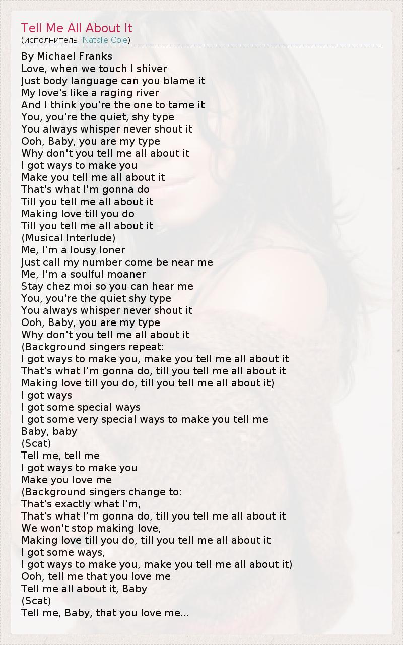 А как ты думаешь, о чем песня "Tell Me All About It" ?