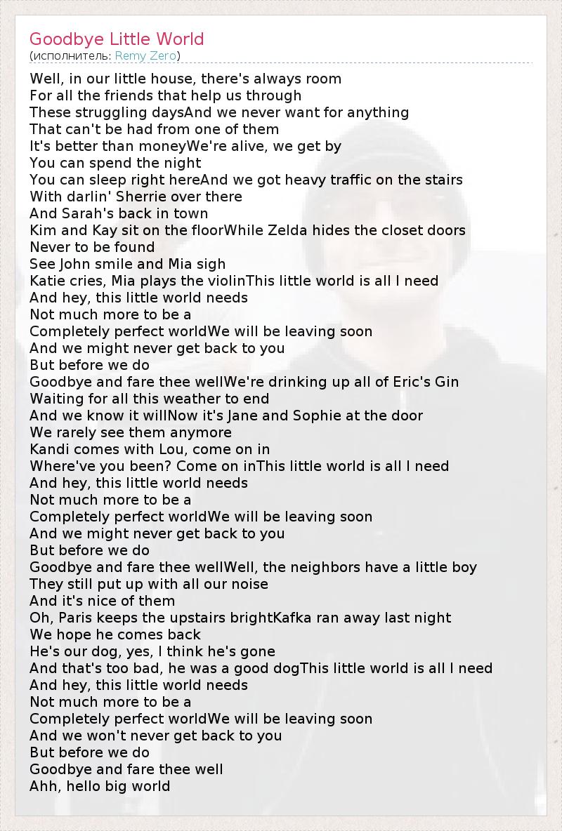 А как ты думаешь, о чем песня "Goodbye Little World" ?