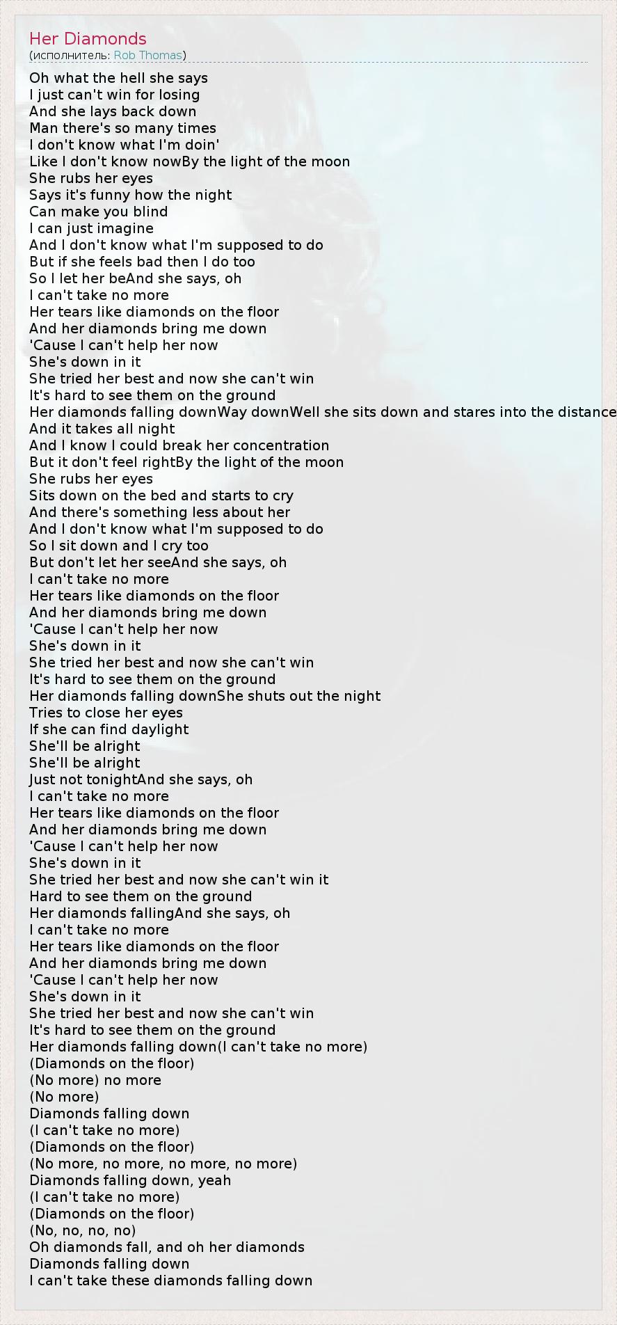 А как ты думаешь, о чем песня "Her Diamonds" ?
