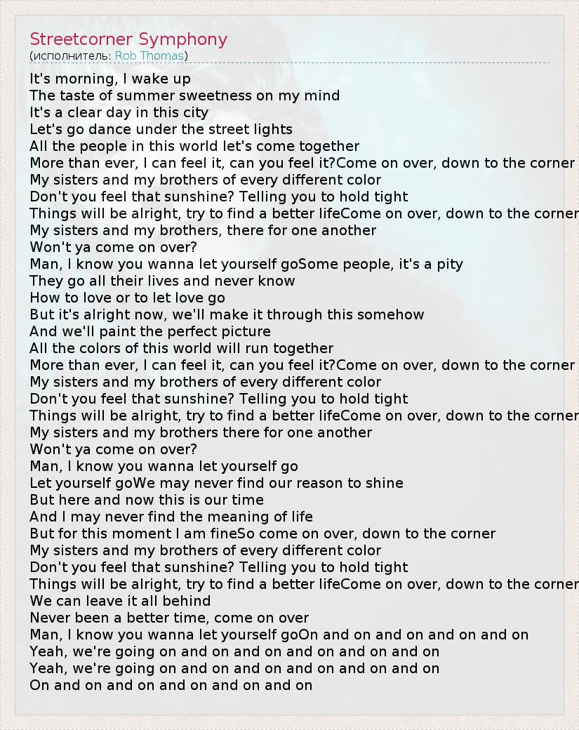А как ты думаешь, о чем песня "Streetcorner Symphony" ?