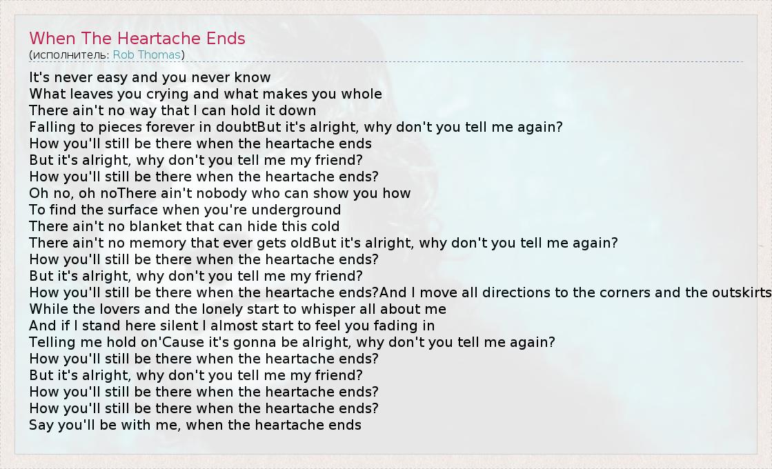ГлавнаяИсполнителиRob ThomasWhen The Heartache Ends