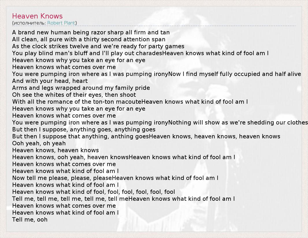 А как ты думаешь, о чем песня "Heaven Knows" ?