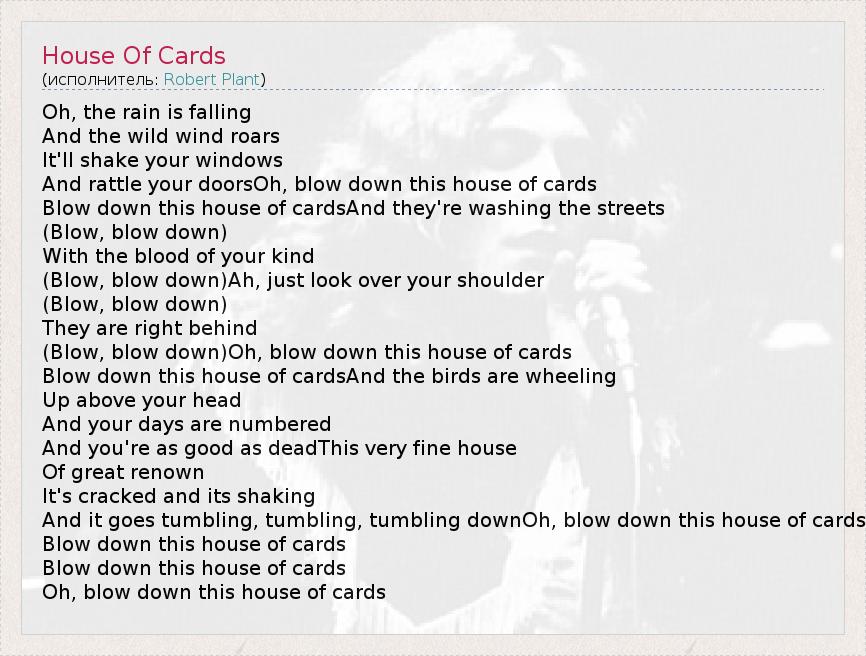 А как ты думаешь, о чем песня "House Of Cards" ?